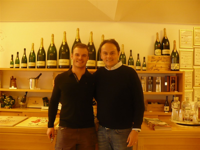 Just one gold medal for Italy in the Olympics in Vancouver. A very prestigious medal because Giuliano Razzoli won it in the slalom. Razzoli is from Emilia and he stood on the highest podium twenty-two years after another Emilian, Alberto Tomba. And like Tomba he celebrated his triumph with Ferrari bubbles. Which Razzoli knows very well. In fact just two months ago, the new Olympic champion visited the Ferrari wineries, accompanied by Matteo and Alessandro Lunelli. And the photos tell the story of the visit and the Olympic toast.