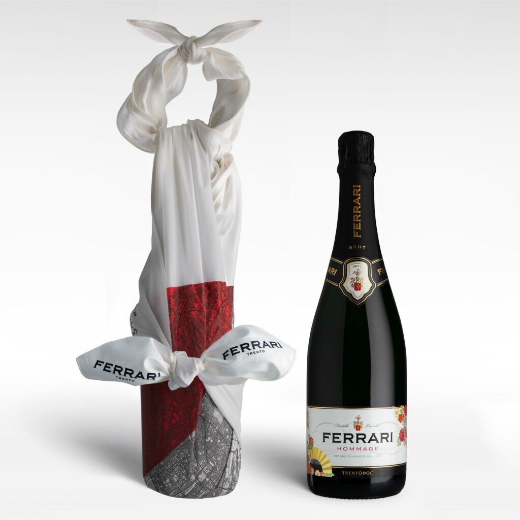 The bond with Japan is also being strengthened, with a special Trentodoc dedicated to the country: the Ferrari Hommage, inspired by Japanese art and aesthetics, as well as a furoshiki, the traditional Japanese cloth used to wrap gifts and objects.