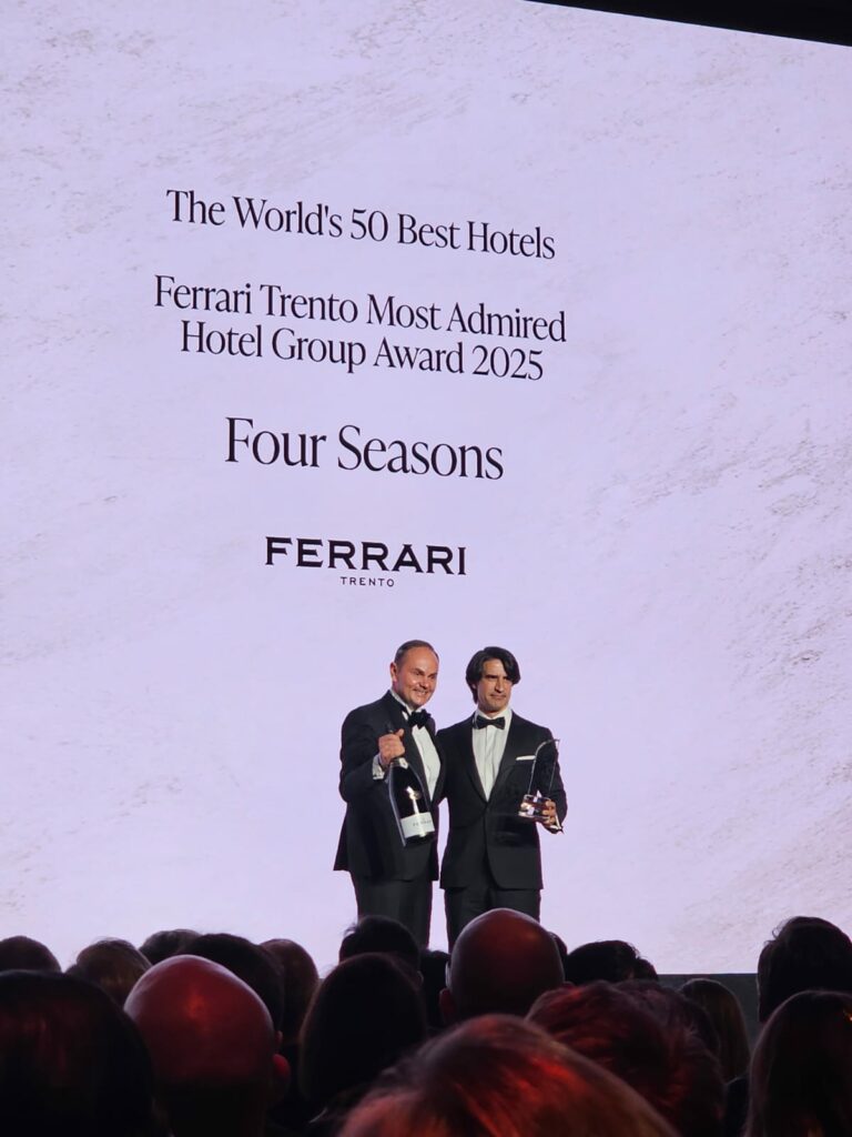 Four Seasons Hotels and Resorts si è aggiudicato il premio “Ferrari Trento Most Admired Hotel Group of the Year” in occasione dei The World’s 50 Best Hotels 2025, l’atteso appuntamento internazionale che celebra le eccellenze mondiali dell’hospitality di alta gamma.