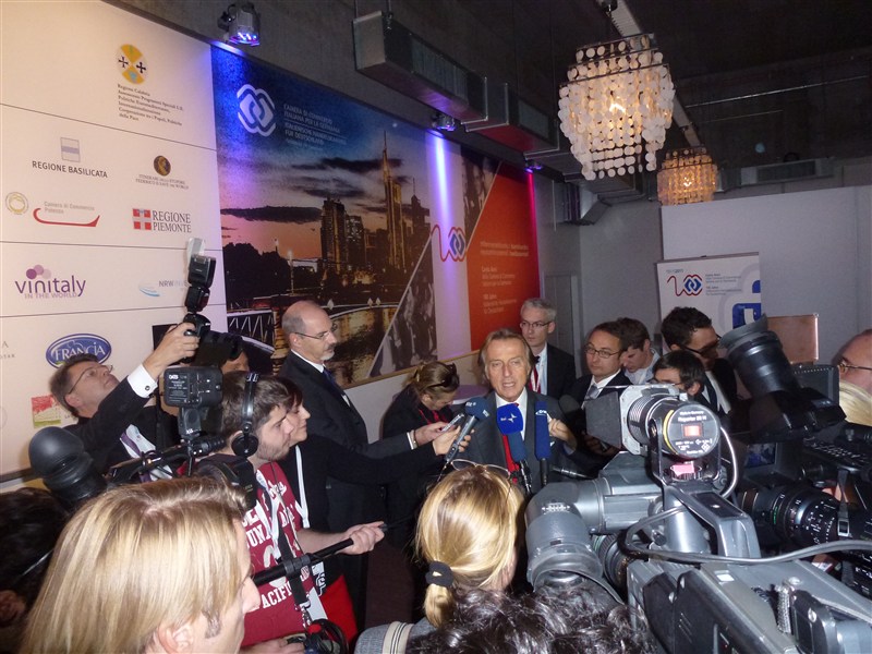 Poteva mancare il Ferrari alla celebrazione del centenario della Camera di Commercio Italiana per la Germania, CCIG ? No, conveniamone, tanto più che nell’ambito della giornata di festa, oggi giovedì 17 novembre, a Francoforte sul Meno, si parlerà del grande made in Italy, in un convegno che ha come significativo titolo “L’Italia che innova e incanta”. Le bollicine Ferrari saranno proposte nel buffet che è previsto a convegno concluso. La sera, invece, nella cena di gala che, con un parterre molto esclusivo di bella gente dell’economia, della finanza, della cultura, italiane e tedesche, si assisterà a una passerella della grande gastronomia del Belpaese, firmata, per l’occasione, dalla Scuola Internazionale di Cucina Italiana e tra i vini che saranno serviti ci sarà il Rosso di Montefalco della tenuta umbra di Castelbuono.